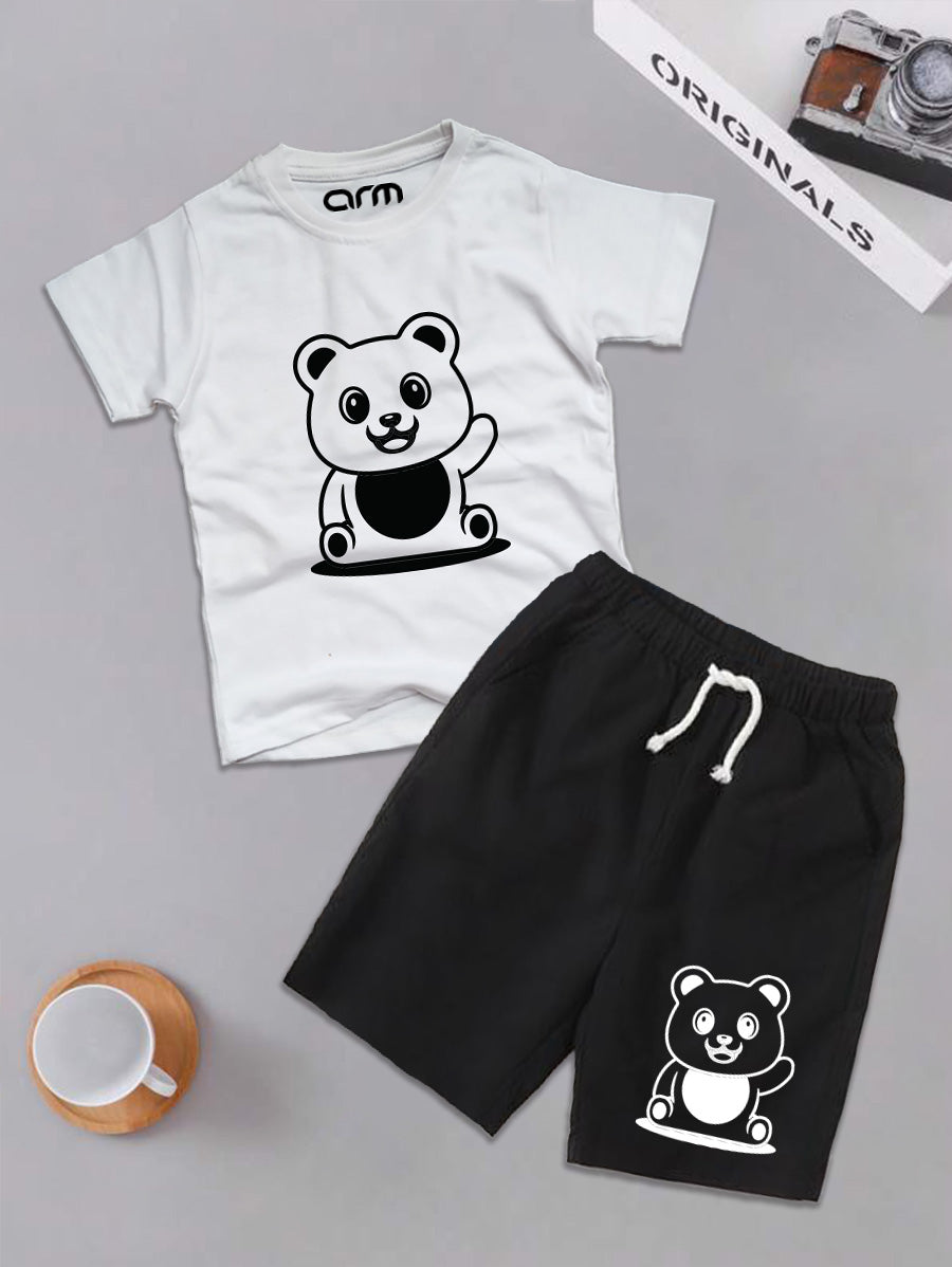 • Graphic Printed Bear T-Shirt in White & Black Bear Short.