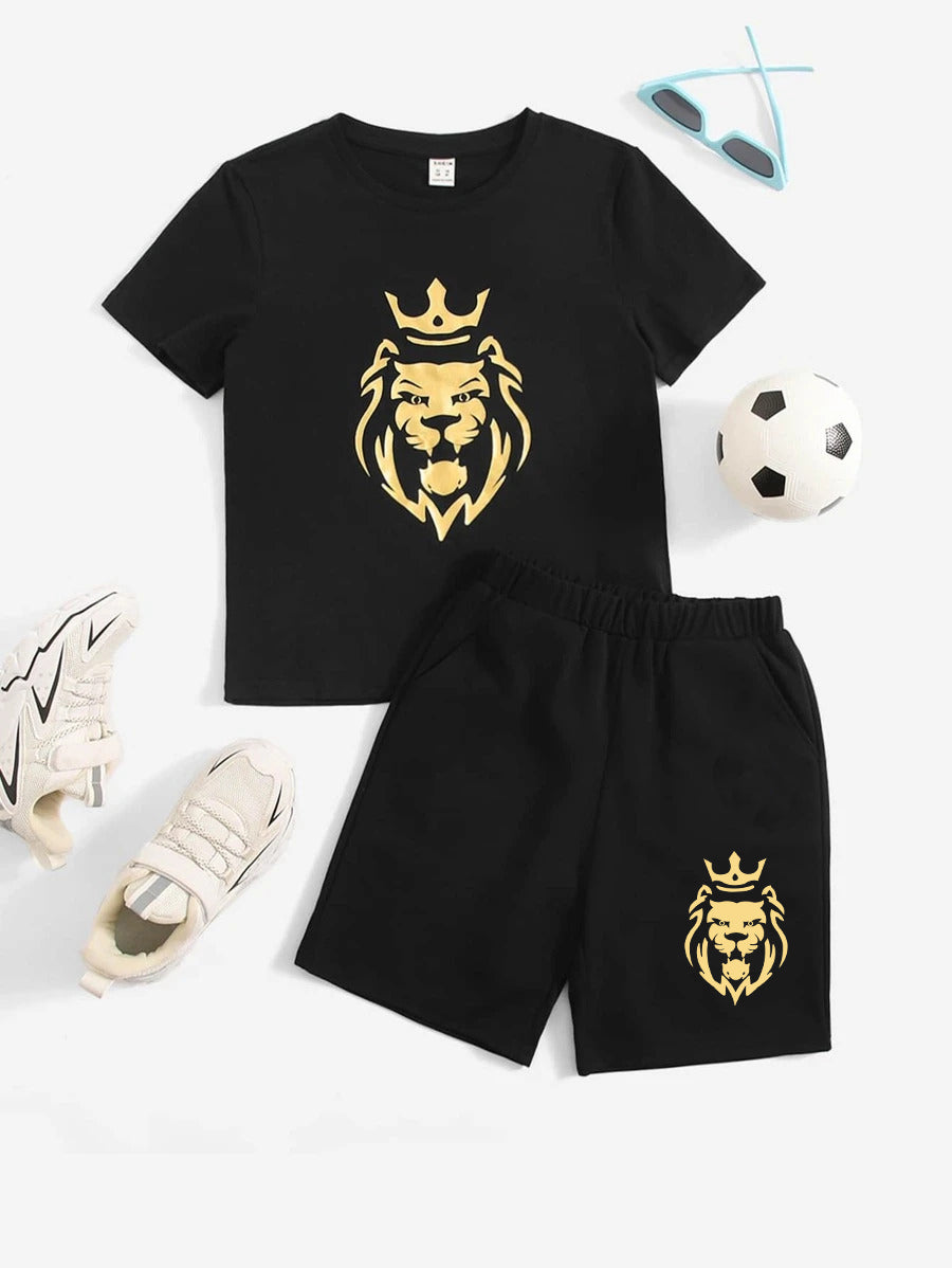 - Lion Graphic Printed T-Shirt in Black & Lion Printed Black Short.