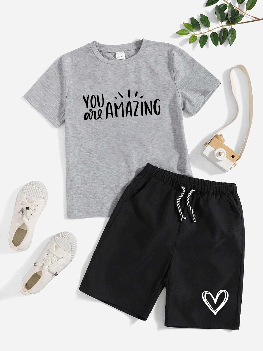 Heather Gray You are Amazing Printed T-Shirt & Black Short Set