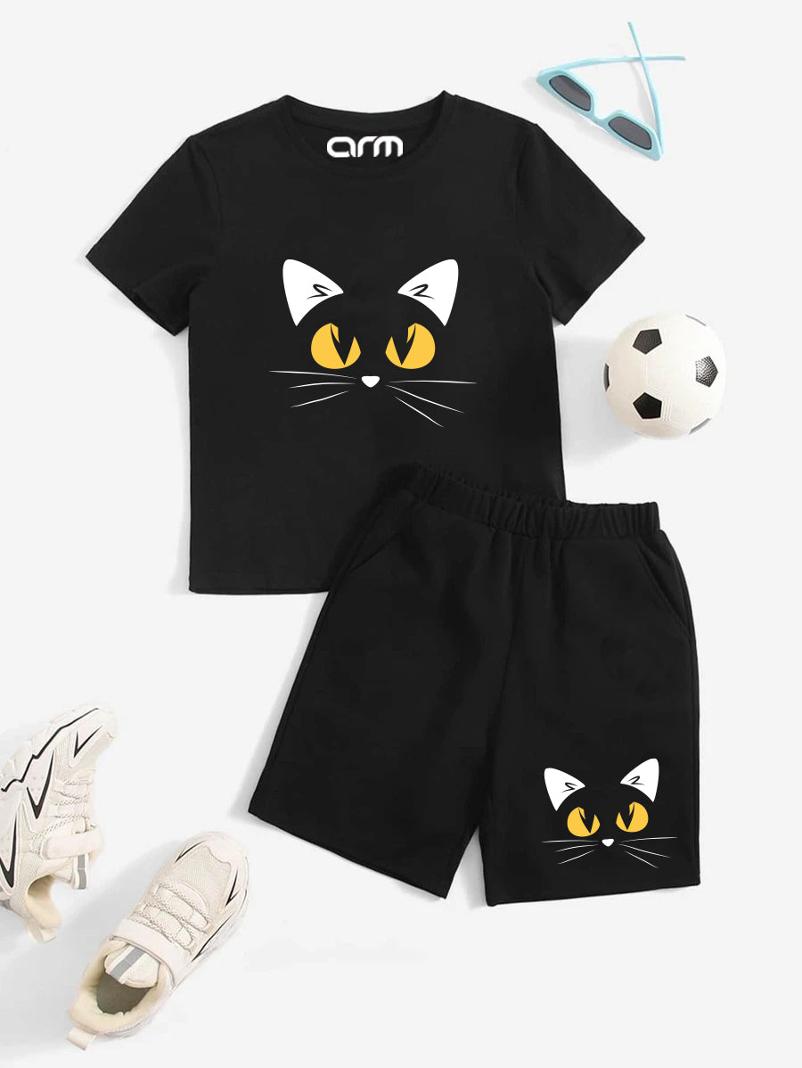 - Graphic Printed Roar T-Shirt in Black & Black Roar Short.