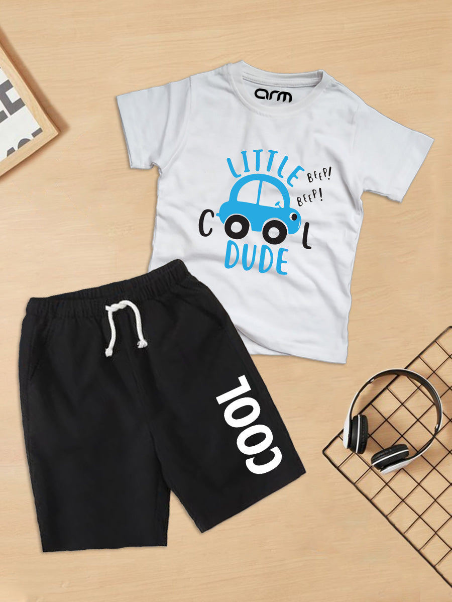 - Graphic Printed Little Cool Dude T-Shirt in White & Black Cool Short.