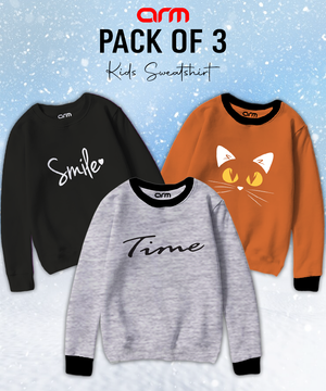 Pack of 3 Contrast Rib Sweat Shirts (SMILE-TIME-CATFACE)