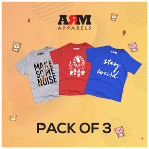 Pack of 3 T-Shirt For Kids - NOISE-ROAR-STAYWEIRD