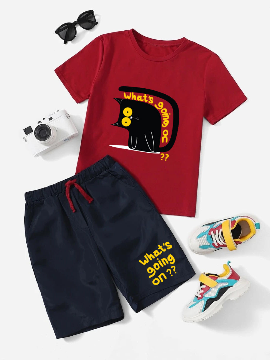 Red Whats Going On Printed T-Shirt & Black Short Set