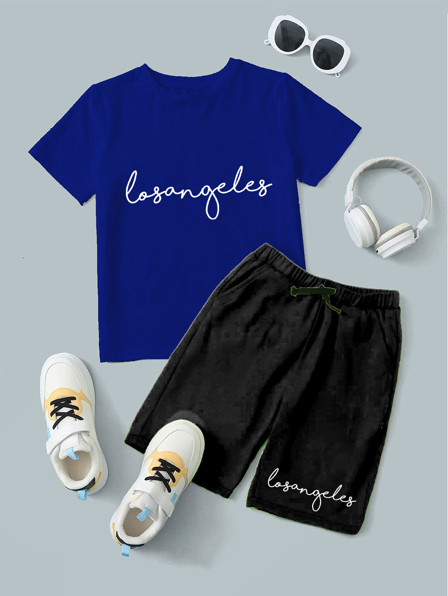 Royal Blue Losangeles Printed T-Shirt & Black Short Set