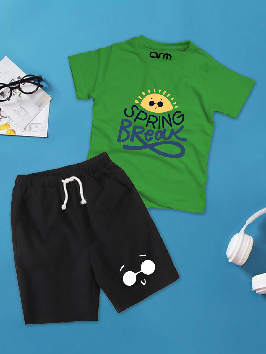 - Graphic Printed Spring Break T-Shirt in Green & Black Short.