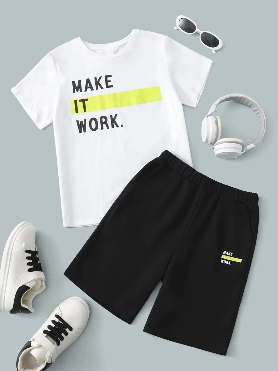 - Make it work Printed T-Shirt in White & Black Pinted Short.