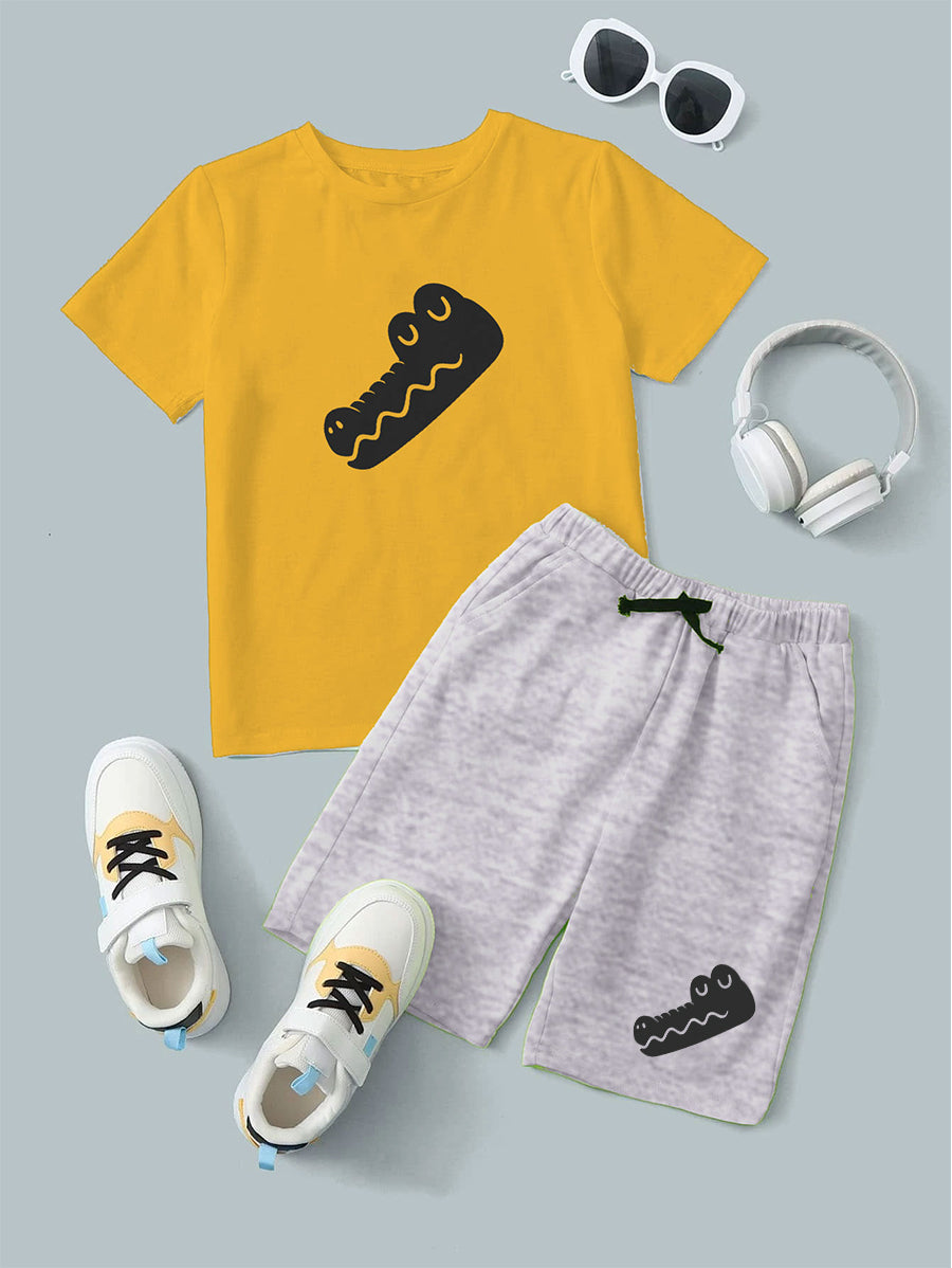 Yellow Graphic Crocodile Printed T-Shirt & Black Short Set