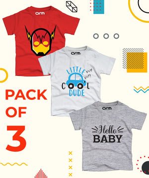 Pack of 3 T-Shirt For Kids - (FLASH-COOL-HELLO)