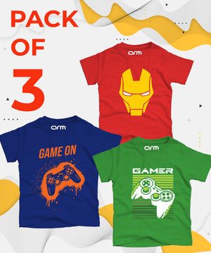 Pack of 3 T-Shirt For Kids - (GAMEON-GAMER-IRONMAN)