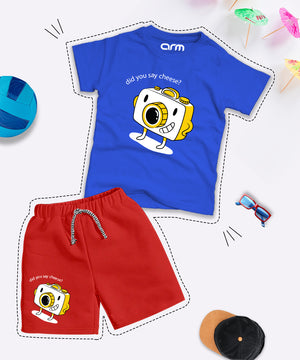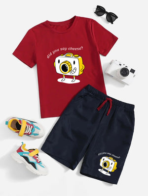 Red Say Cheese On Printed T-Shirt & Black Short Set