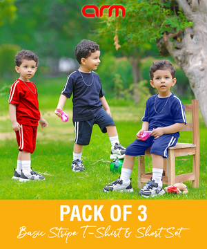 Pack of 3 Basic Stripe T-Shirt & Short Set